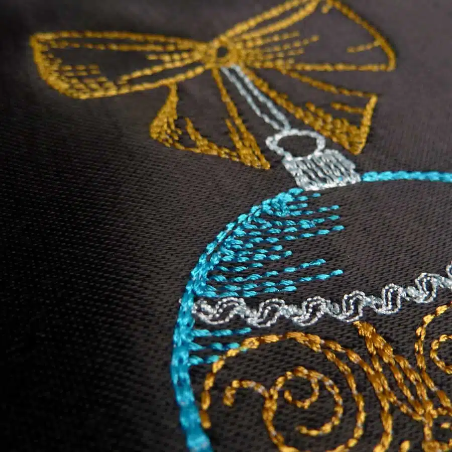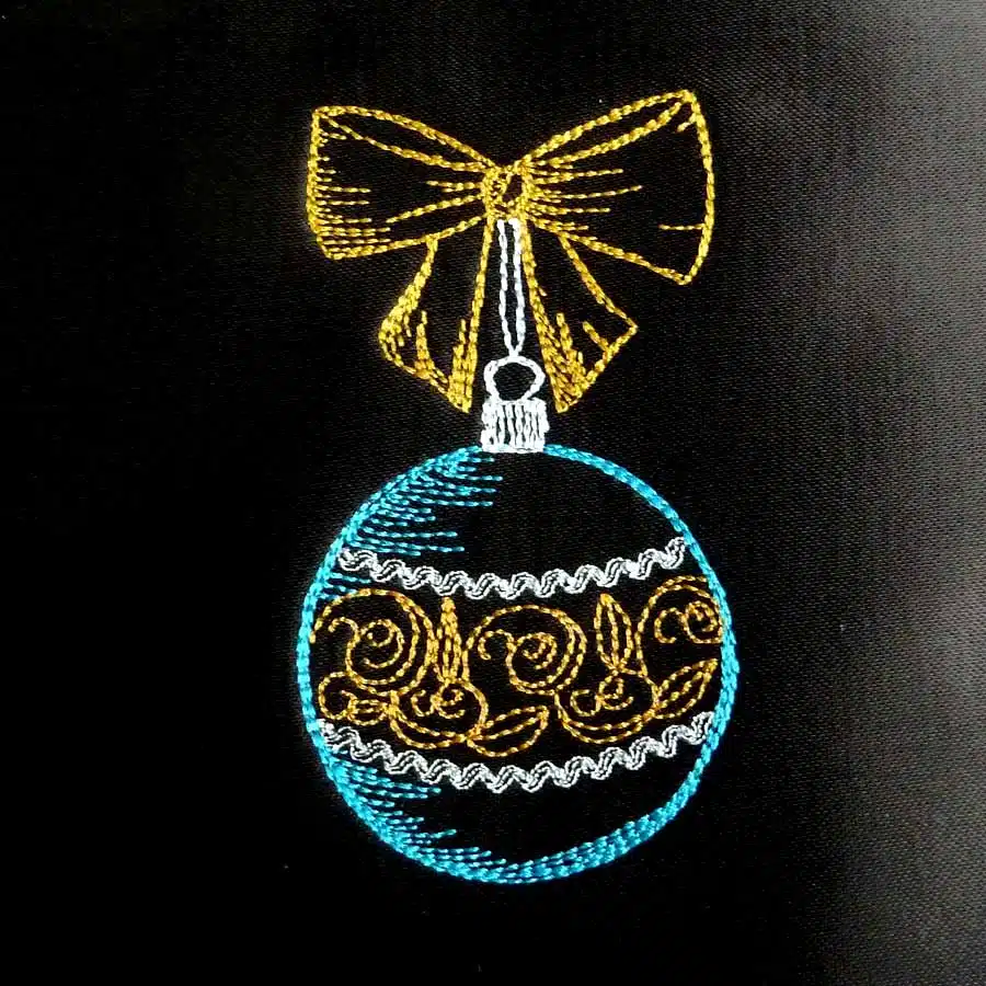 Ohne Frage ist das eine edle Christbaumkugel, die sich auf weihnachtlichen Nähprojekten auf jeden Fall bezaubernd platzieren lässt.