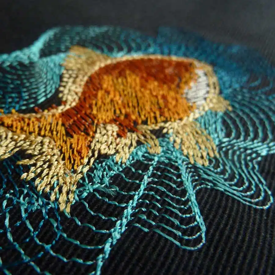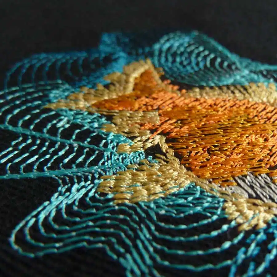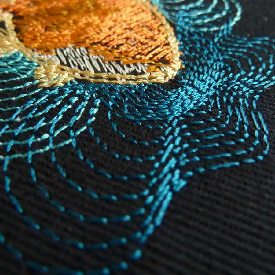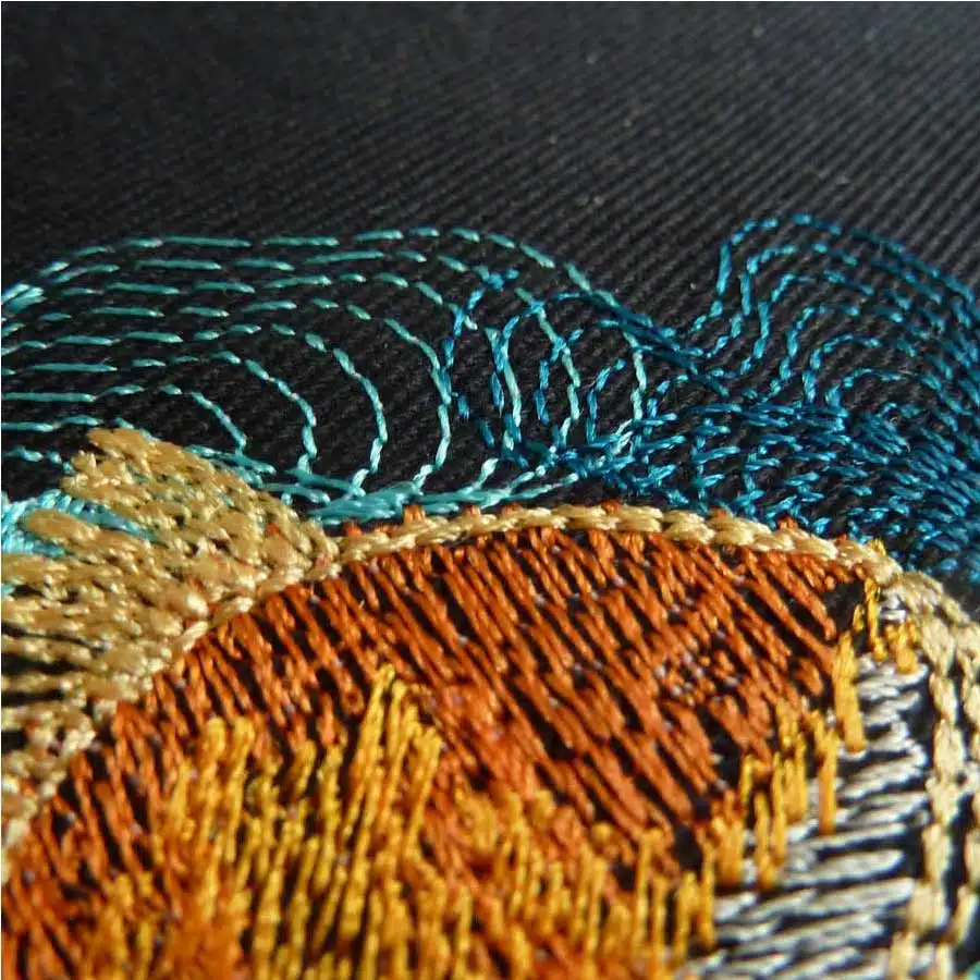 Durch diese besondere Stichart erhält die Stickerei einen Effekt, den ich gerne als „Illusionsstickerei“ beschreibe, da er das Auge des Betrachters einzigartig in den Bann zieht.