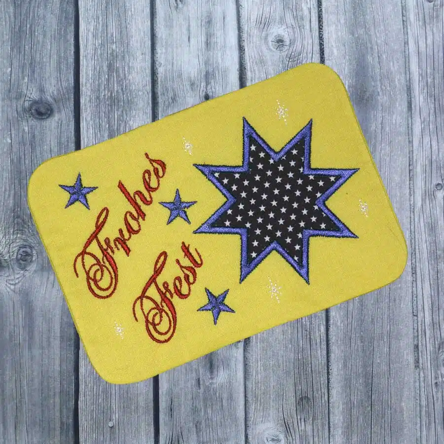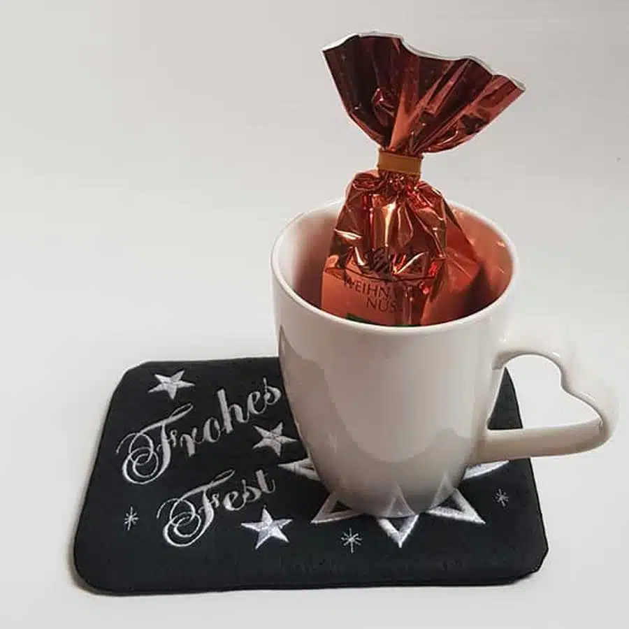 Mit der Stickdatei ITH Becherteppich Frohes Fest bekommst du ein schönes ITH Projekt für deine Stickmaschine.
