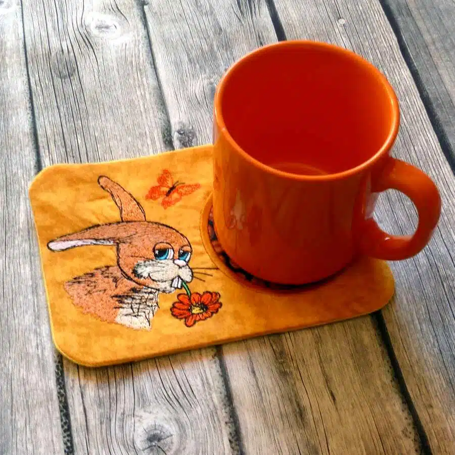 Weil In the Hoop sticken einfach Spaß macht, bekommst du mit dem ITH Becherteppich Hase ein tolles Projekt für deine Stickmaschine. Du kannst diesen Becherteppich komplett im Stickrahmen fertigen – ohne eine Wendenaht von Hand schließen zu müssen!