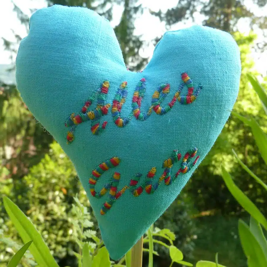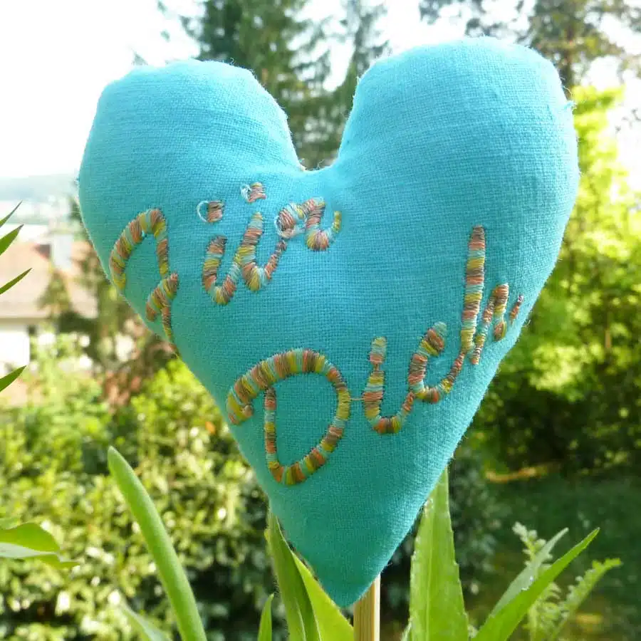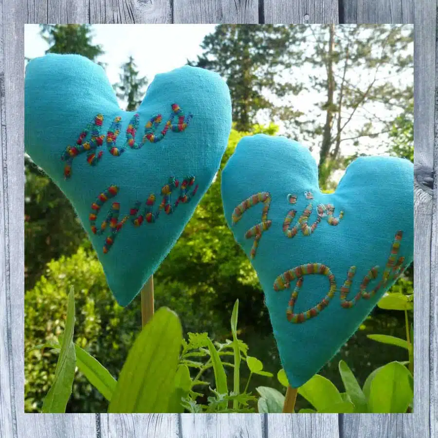 Die Mini ITH-Herzen sind ruckzuck gestickt. Du brauchst sie dann nur noch füllen und die kleine Wendeöffnung schließen. Ob du sie als Herzchen zum Aufhängen machst oder vielleicht als Blumenstecker, bleibt ganz deiner Kreativität überlassen.