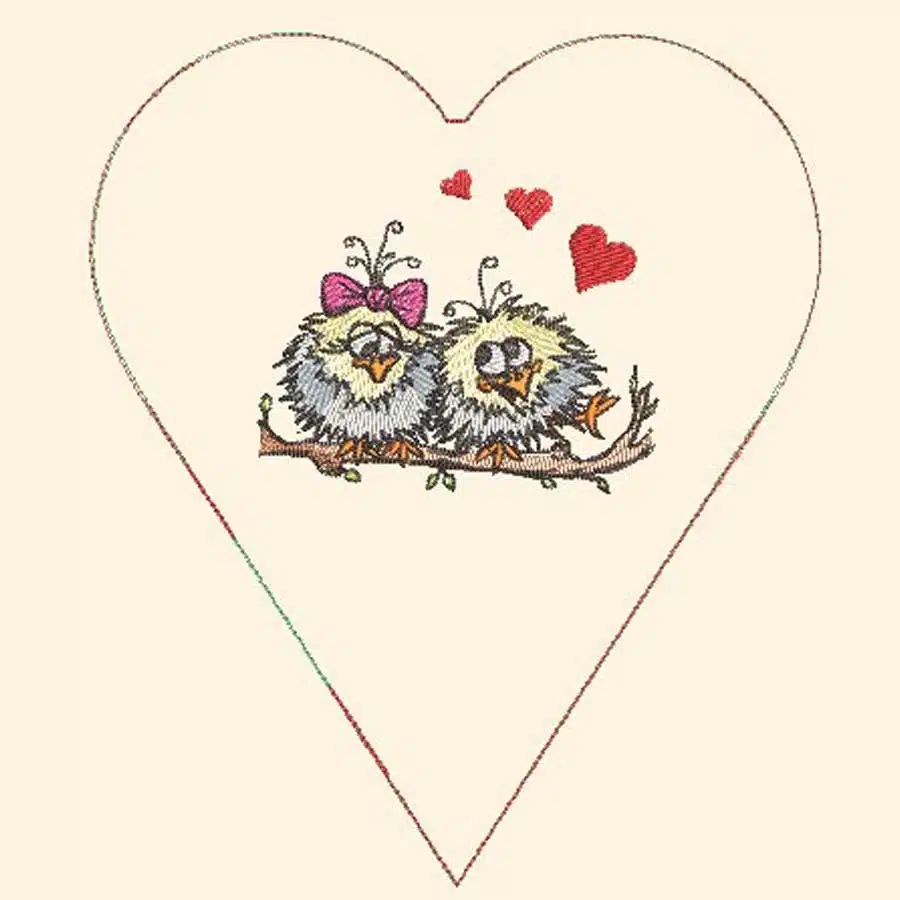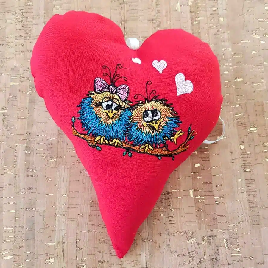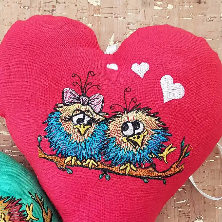 Mit dem ITH Herz den verliebten Kritzelvögeln stickst du ein wahrlich herziges Deko-Herz komplett in deinem Stickrahmen in 18 x 30 cm.