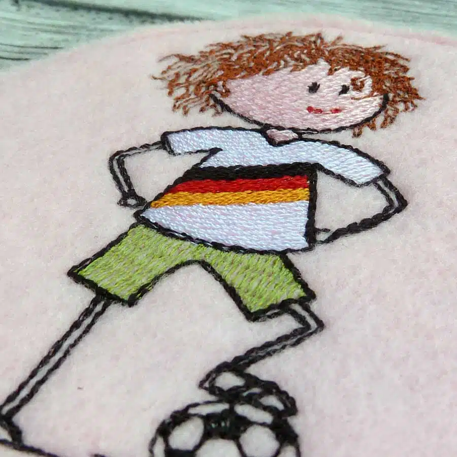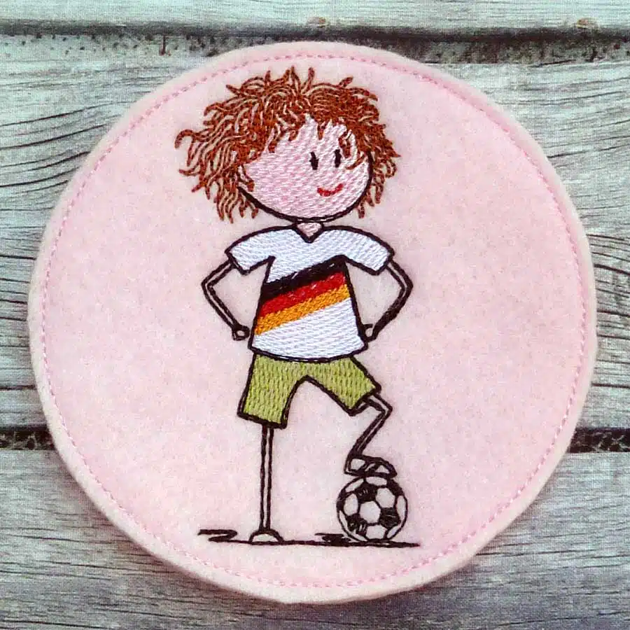 Mit dem ITH Untersetzer Lilly Fußball bekommst du einen superniedlichen Untersetzer für deine Stickmaschine. Auch Mädchen (Frauen) spielen Fußball, wie Lilly sehr überzeugend darstellt.