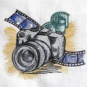 Mit dem Motiv Kamera-Kunst bekommst du ein besonderes Stickdesign für deine Stickmaschine.