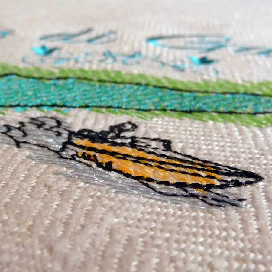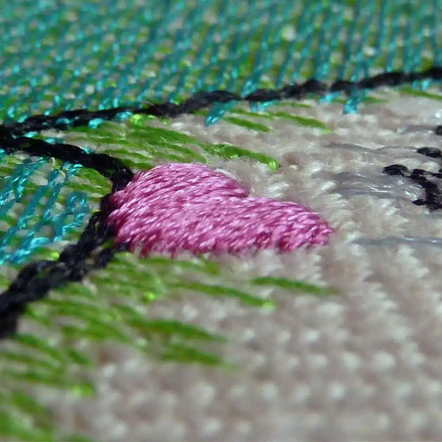 Alle Dateien, bis auf dem Schriftzug sind in leichter Doodle-Stickart und somit zarter als ein Vollstick. Ein kleines Extra ist das kleine Herzchen, welches in „3D“ etwas erhaben über der restlichen Stickerei steht…