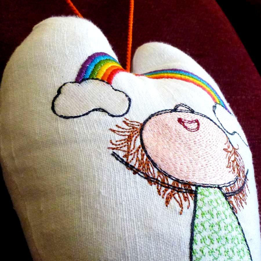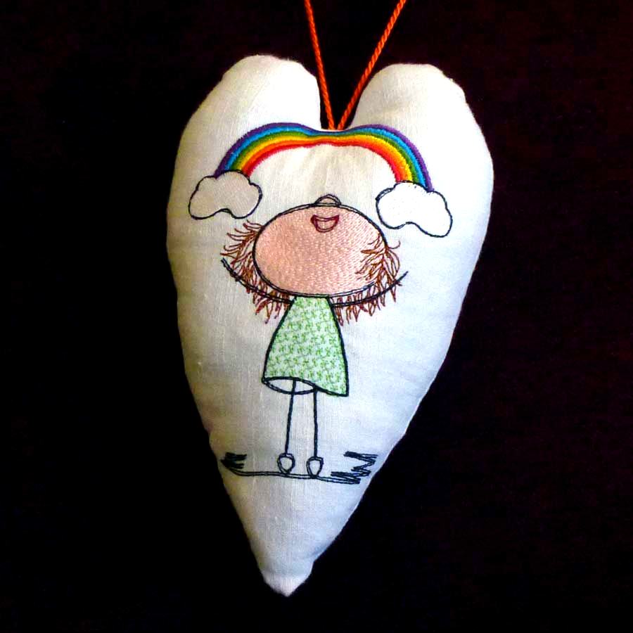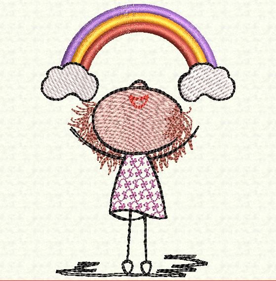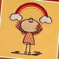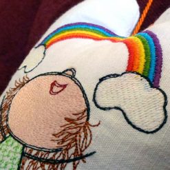 Das Stickdesign Lilly Regenbogen Kostprobe ist ein Motiv aus der beliebten Herzlilly-Reihe von Elfenidee. Die drollige, kleine Herzlilly mit ihrem wilden Haarschopf, deren Bilder oft so viel mehr sagen, als 1000 Worte und genau so etwas in diesen Tagen besonders zählt.