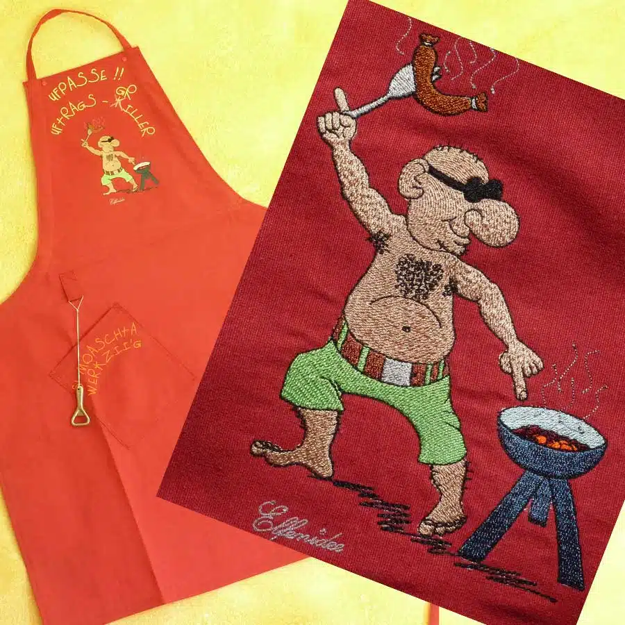 Die ultimative Stickdatei für alle Meistergriller… Ein besonderer Blickfang… zum Beispiel auf der Grillschürze für den Grillmeister. Das optimale Vatertagsgeschenk aus der eigenen Näh-Werkstatt!