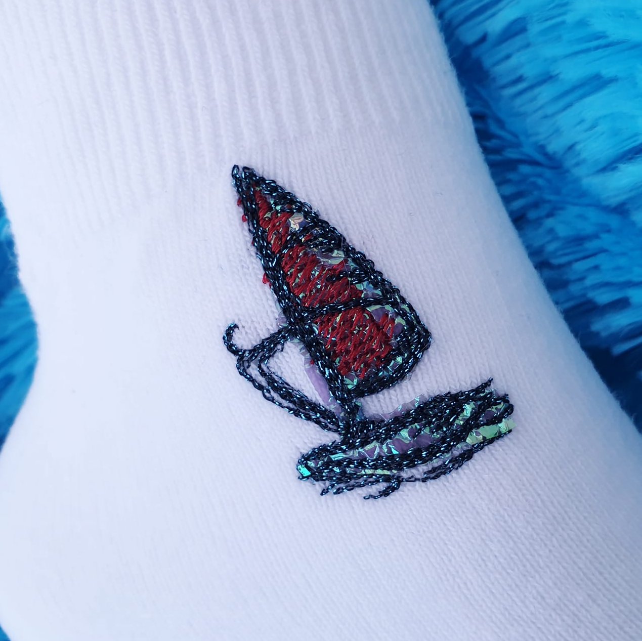 Um Socken zu besticken bedarf es besonderer Stickdateien. Stickmotive für Socken dürfen nicht zu dicht erstellt sein und auch die Größe darf nicht zu groß sein.