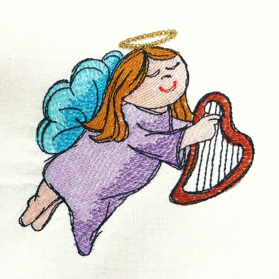 Die Stickdatei Pummelengel mit Harfe 1010 ist eines von drei charmanten Stickmotiven um die herzigen Pummelengel.