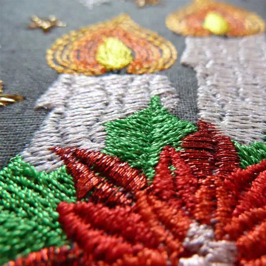 Ebenso wie alle andere Dateien besticht die Stickdatei Adventsgesteck 1010 durch fein umgesetzte Details. Durch die Vollstickweise kommt das Motiv auf allen Untergründen gut zur Geltung. Einen ganz besonderen Effekt kannst du erwirken, wenn du für einzelne Sticksequenzen besondere Garne verwendest wie z.B. Metallic-Garne oder Hologramm-Garne. Überdies kannst du das Gesteck in passenden Farben zu deiner Einrichtung oder deiner Weihnachtsdeko abstimmen.