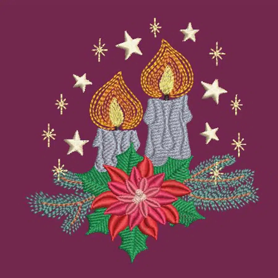 Mit der Stickdatei Adventsgesteck mit Kerze wird langsam die bevorstehende Adventszeit eingeläutet.