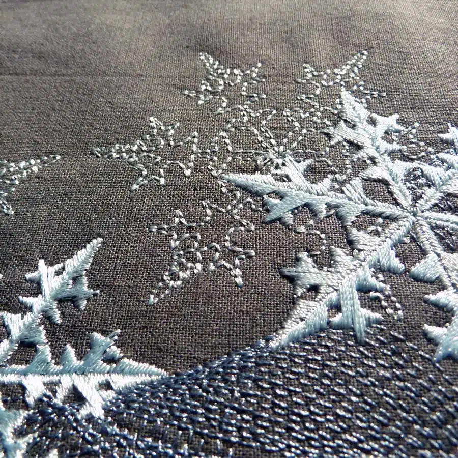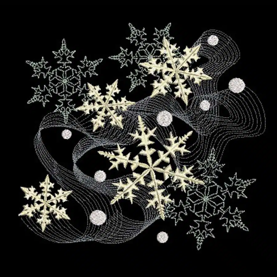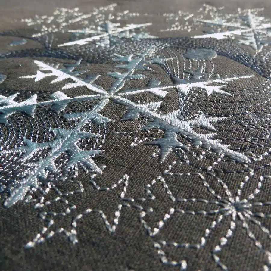 Die Stickdatei Flockentanz 2030 ist für deine ganz großen Nähprojekte auf dem Stickrahmen mit 20 x 30 cm gedacht.