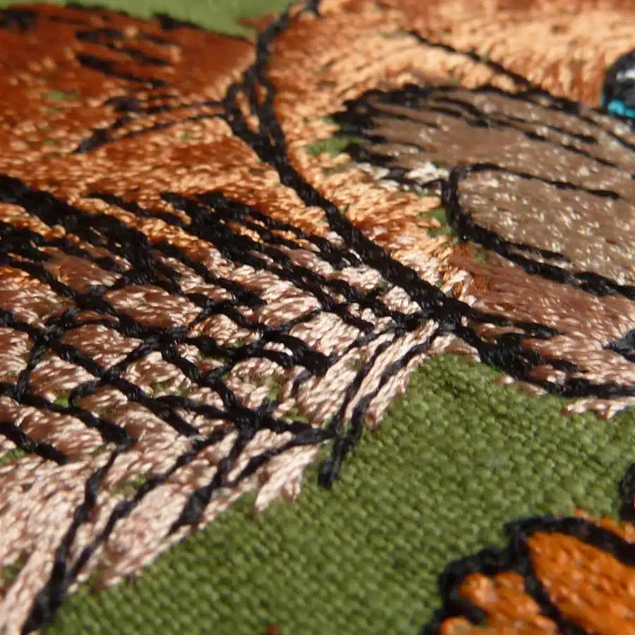 Eine besondere Stichart lässt das Fell Konrads richtiggehend real erscheinen und trotzdem ist die Stickweise leichter als ein gewöhnlicher Füllstich.