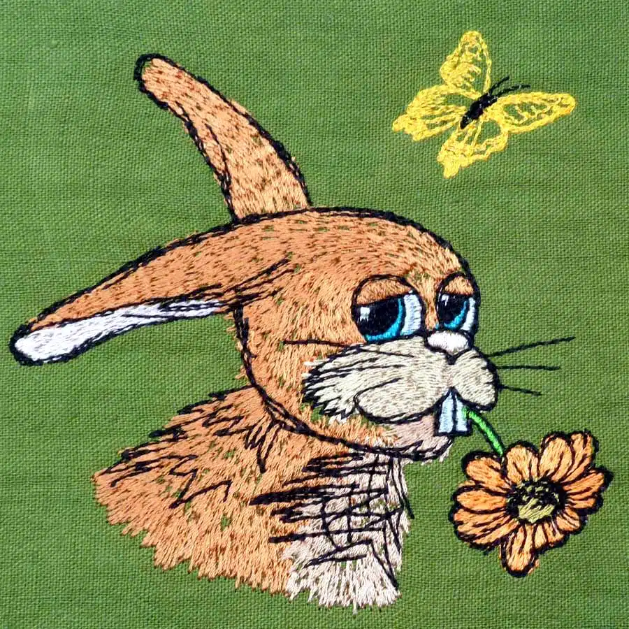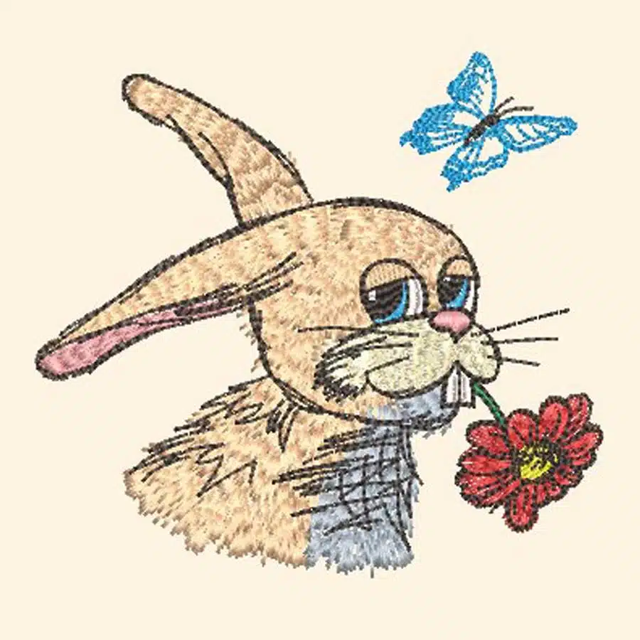 Wenn du ein ganz einzigartiges Stickdesign haben möchtest, dann hol‘ dir diesen lustigen Hasen.