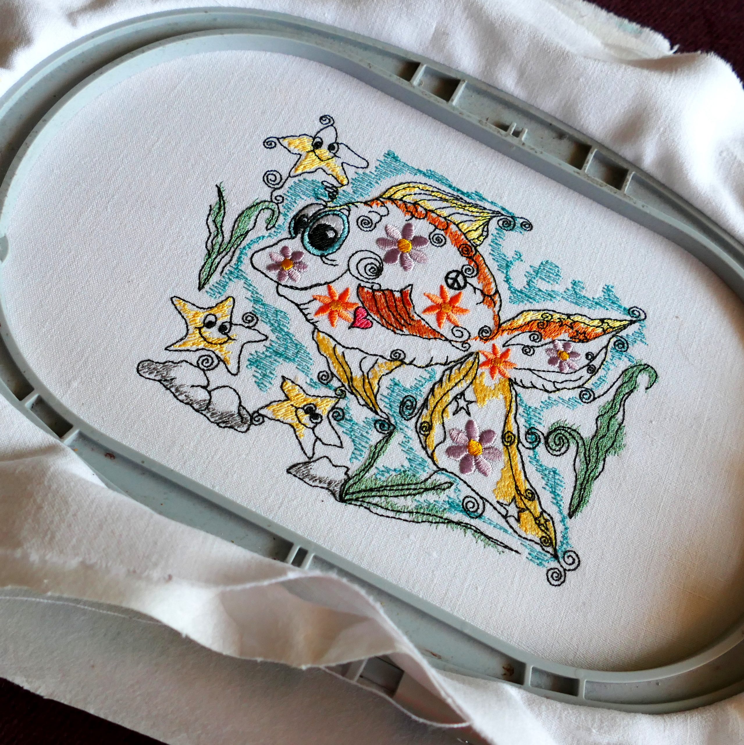 Mit der Stickdatei Hippie-Fisch bekommst du ein weiteres, herzallerliebstes Stickmotiv – wählbar in zwei unterschiedlichen Größen.